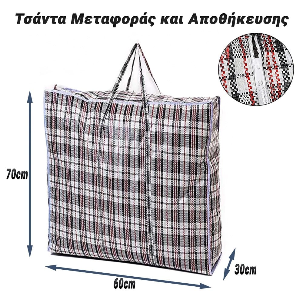 Η ιδανική λύση για ασφαλή μεταφορά και αποθήκευση αντικειμένων στο σπίτι, στα ψώνια ή στις μετακινήσεις σας. Η Τσάντα Μεταφοράς και Αποθήκευσης προσφέρει μεγάλη χωρητικότητα και ανθεκτική κατασκευή, ώστε να καλύπτει κάθε ανάγκη – από ρούχα και κλινοσκεπάσματα μέχρι εποχιακά είδη και αντικείμενα μετακόμισης. Ακόμη αποτελεί τον ιδανικό σύντροφο στα ψώνια!