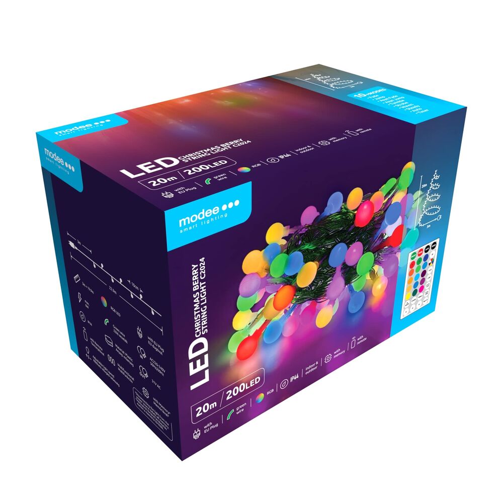 Modee Χριστουγεννιάτικα Λαμπάκια LED Τύπου Berry με Βύσμα & Τηλεχειριστήριο (200LED/20m/10cm) RGB