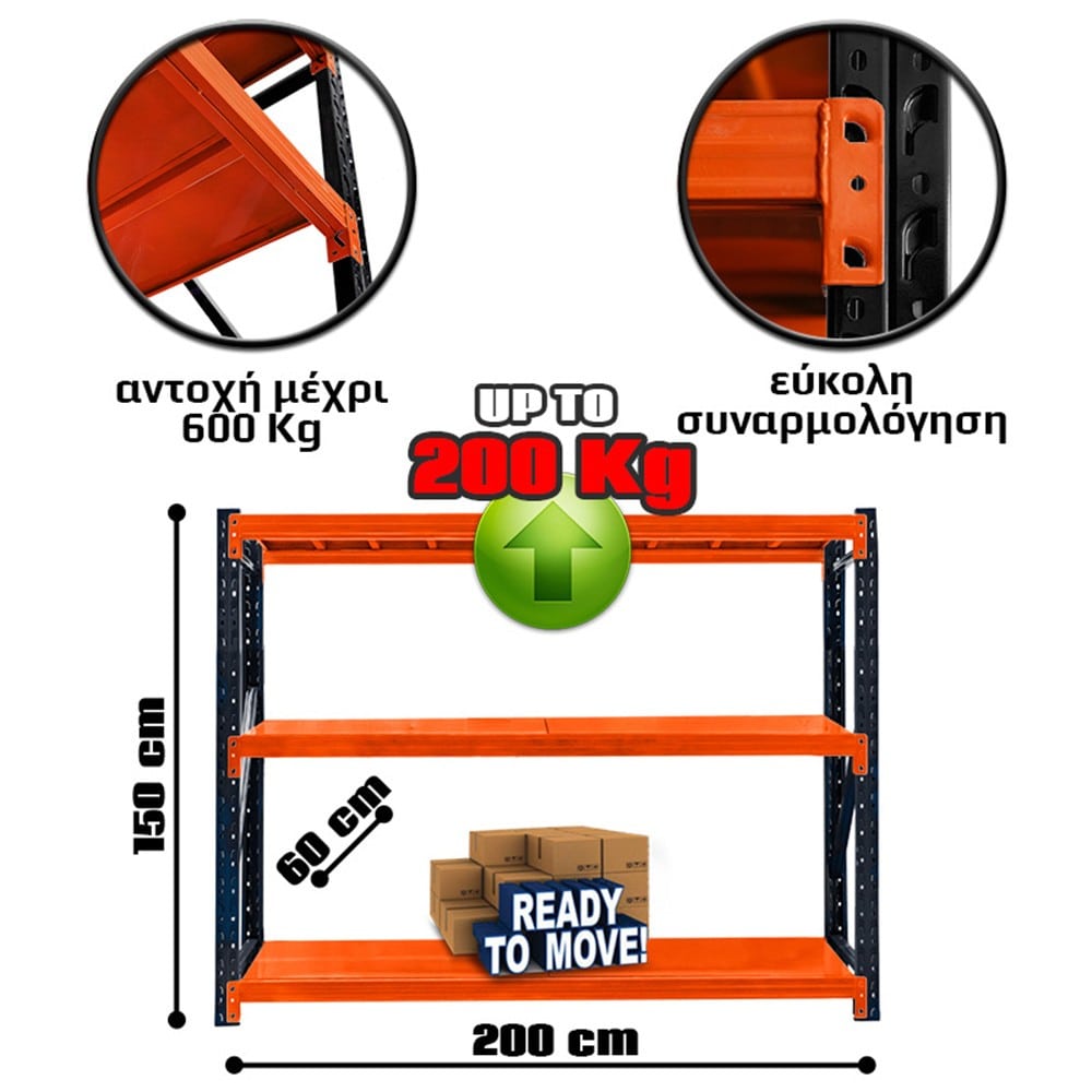 Προσδιορισμός: Ράφια Βαρέως Τύπου 150x200x60 Μαύρο-Πορτοκαλί