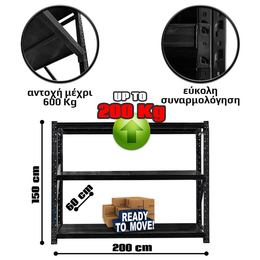 Προσδιορισμός: Ράφια Βαρέως Τύπου 150x200x60 Μαύρο