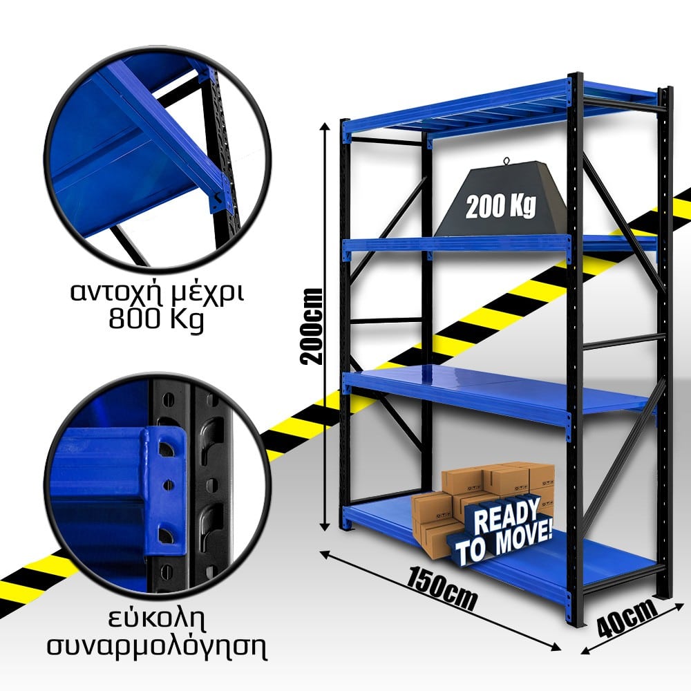 Προσδιορισμός: Ράφια Βαρέως Τύπου 200x150x40 Μαύρο-Μπλε