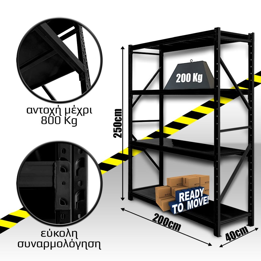 Προσδιορισμός: Ράφια Βαρέως Τύπου 250x200x40 Μαύρο