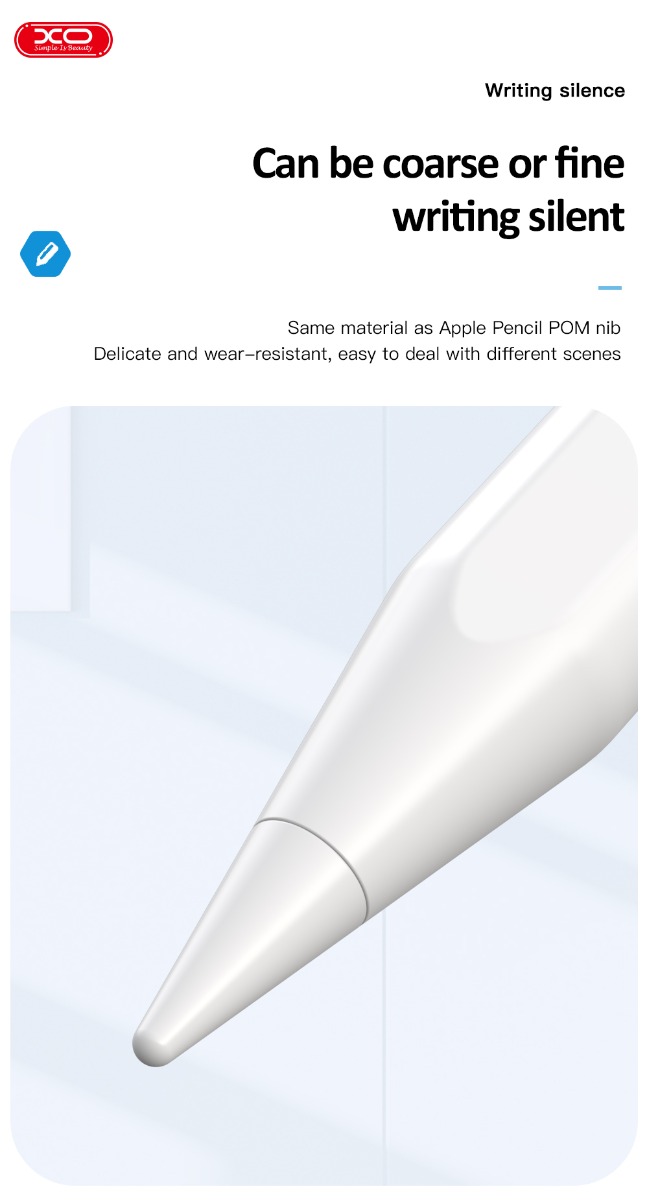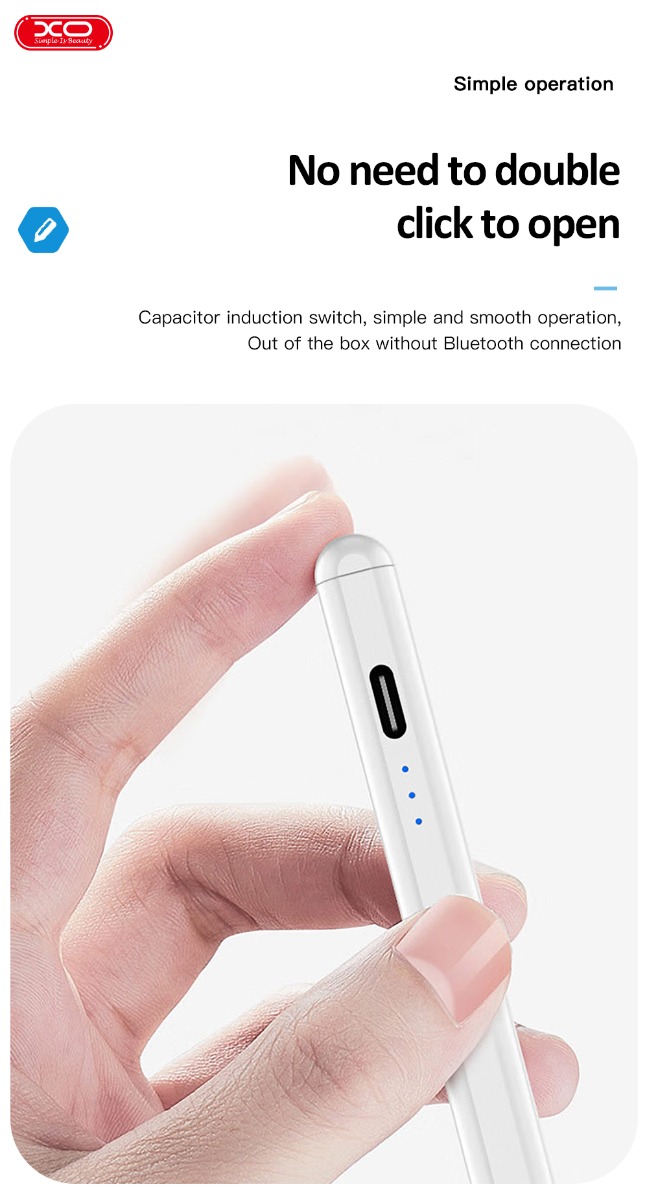 Το XO ST-04 είναι ένα καθολικό στυλό αφής με διάρκεια χρήσης 6 ωρών, γρήγορη φόρτιση Type-C και ευρεία συμβατότητα με τις περισσότερες συσκευές Android και Apple, για ακριβή χειρισμό και γραφή.